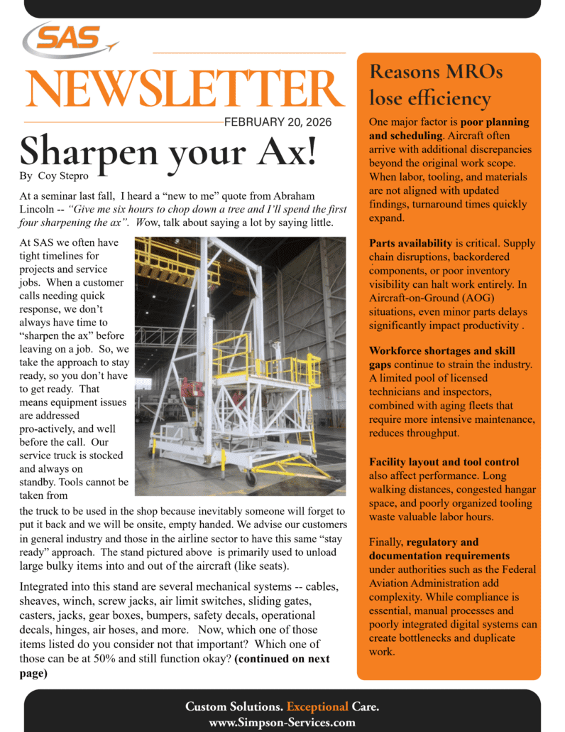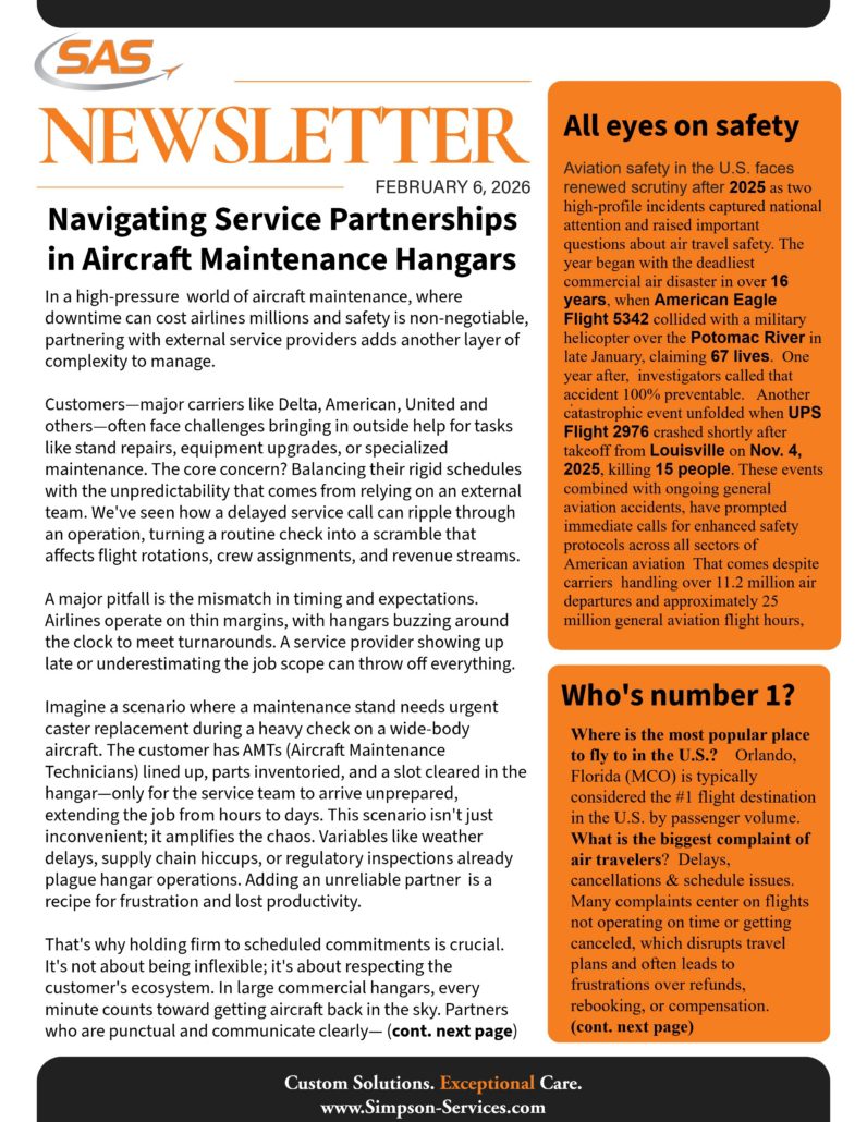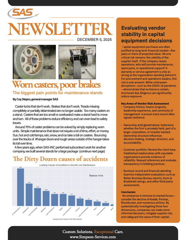 At SAS-INC, we believe in running a trusted business that is family-owned and delivers corporate quality services. We pride ourselves on offering custom solutions, prompt delivery, and personal care to each and every one of our clients. We’ve specialized in the fields of aerospace maintenance, ground support equipment, and heat treat services since 1992 and have no plans to stop.